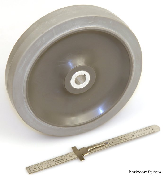 This 6" nominal OD drive wheel has a soft non-marking rubber tread and an aluminum hub with a 1/2" bore and 1/8" keyway. This wheel was designed for use with our spur gear boxes.